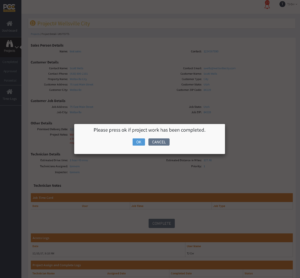 Once the demonstration is complete, the Technician will click “Complete” it will ask for a certification that everything is good, and then the project will disappear from the iPad.