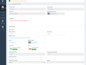 The most common project you’ll get in Operations is a JOB.  This is your standard, pre-bid or surveyed job where you know in advance what needs to be done.  This will include having a spreadsheet from BidBoss of the different hazards that need to be cut, etc.   Jobs are designated with a green circle with a “J” inside.  The Lead Tech (Operations) clicks on the job that he receives from the sales person.  Opens it up and looks at what is involved.