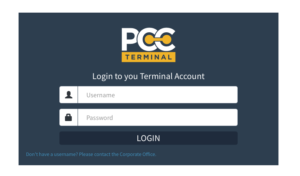 This is the Main Terminal Login Screen. The web address is: franchise.pccterminal.com.