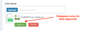 • Crew Sheet Approval Process has been simplified. One button for Manual Upload as well as Send from BB Server. Approve Button disappears when selected so you know it’s been done.