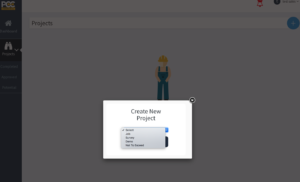 To Create a Project, Select the Blue Cross in the top right of the screen and choose the Project type.