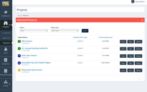 Under the Projects Tab you have three options to select: Completed, Approved and Potential.